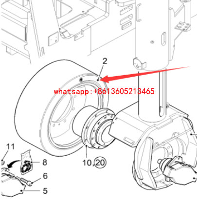 Rear wheel assembly of imported milling machine, part number 199575. Wear-resistant polyurethane wheels are equipped with different tire models depending on the vehicle model.
