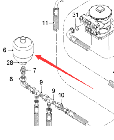 Milling machine milling drum accumulator, part number 2275415, is a type of hydraulic accessory for milling drums. Depending on the vehicle model, different accumulator models are configured.