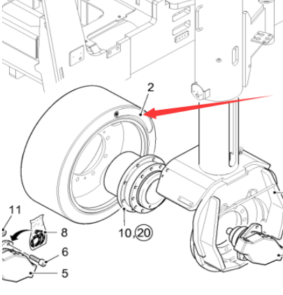 The rear wheel of the grinding machine, part number 199575. Grinding machine traveling tire assembly, grinding machine polyurethane traveling tire. The type of wheels configured varies depending on the model of the grinding machine.